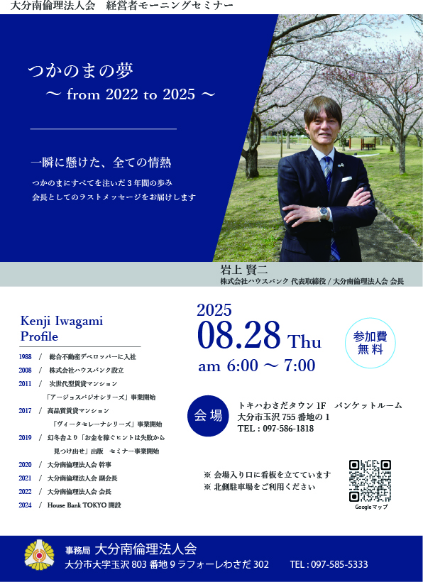 大分セミナー情報 大分南倫理法人会 経営者モーニングセミナー