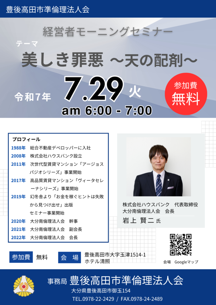 大分セミナー情報 豊後高田市準倫理法人会 経営者モーニングセミナー